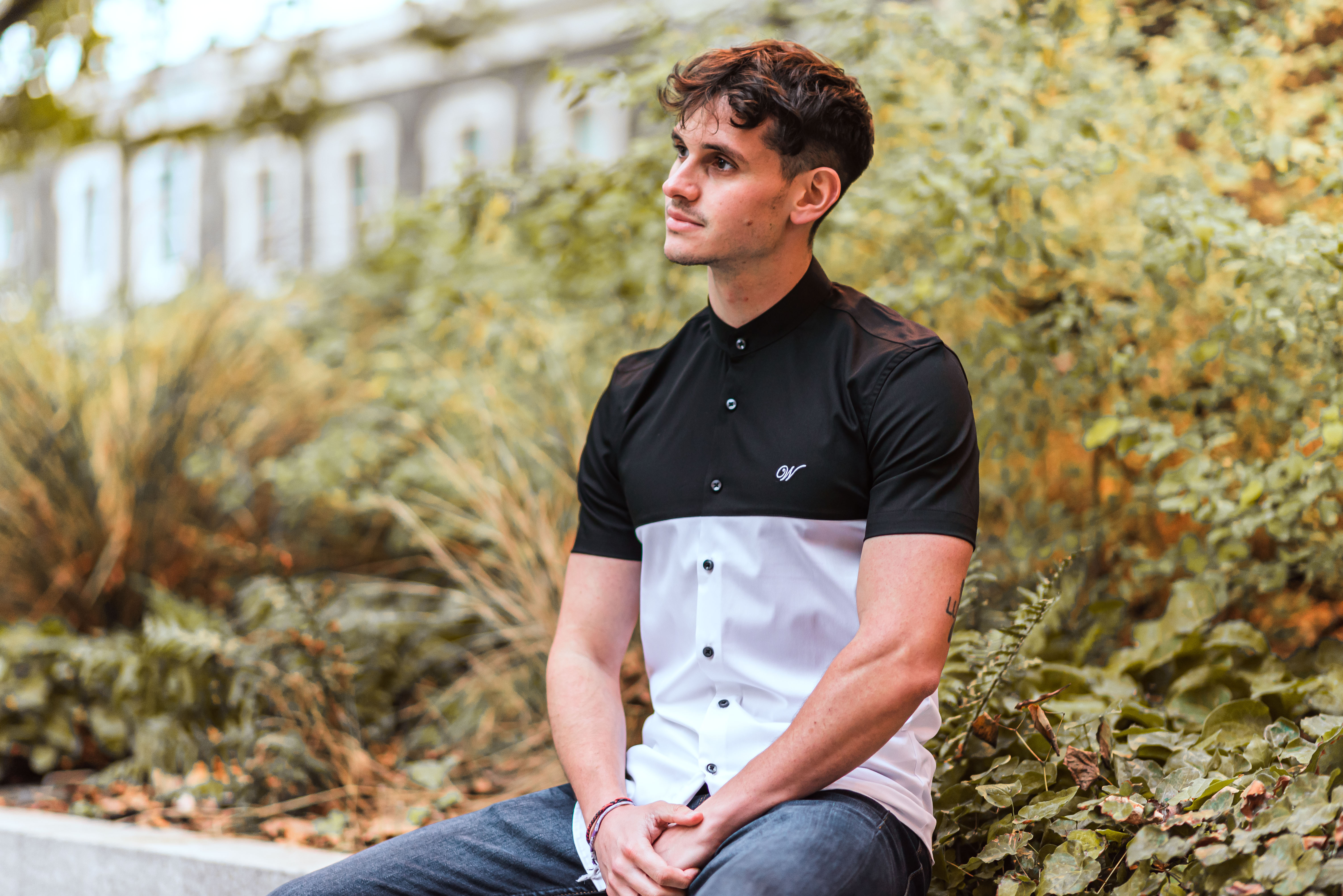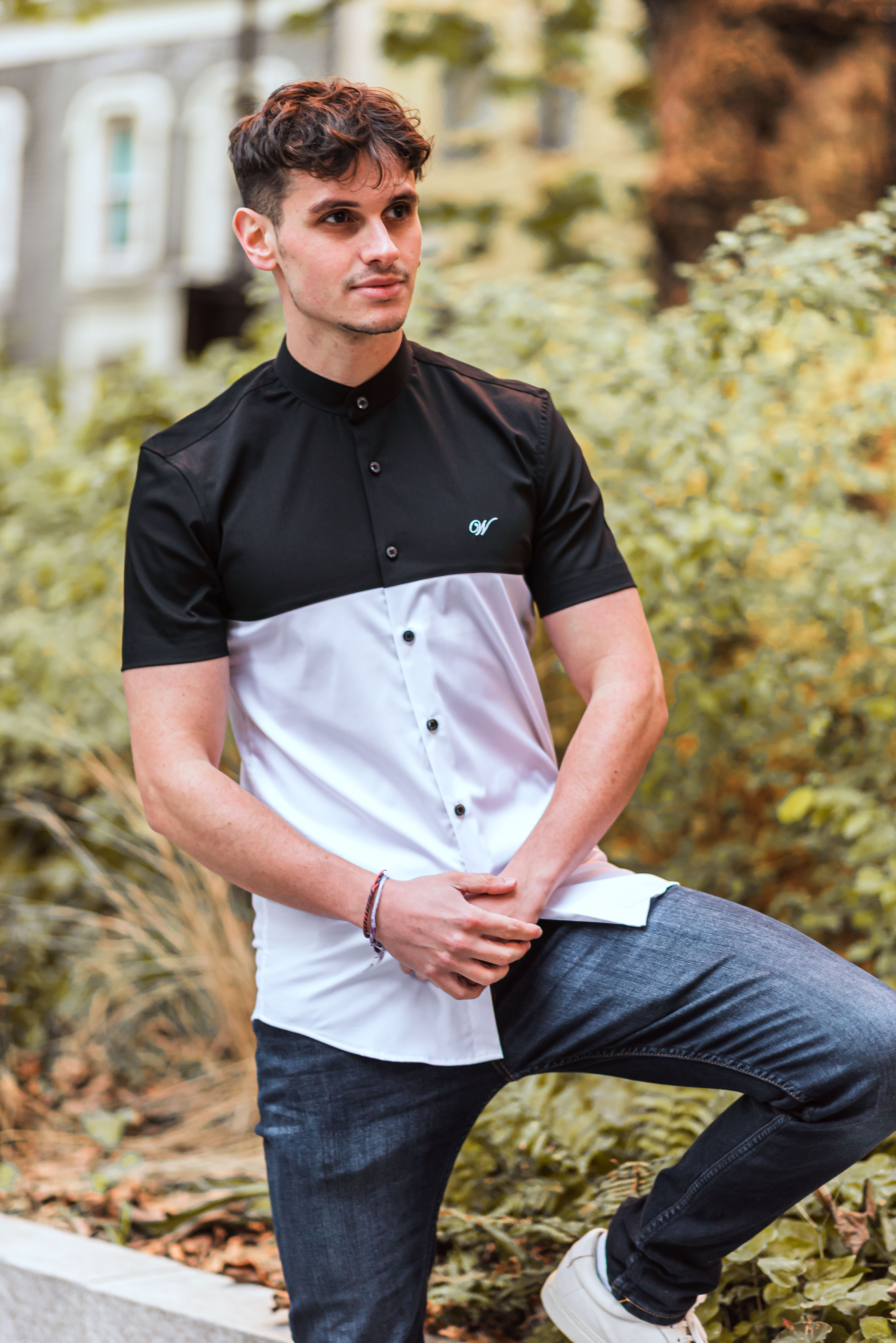 Camisa blanco y negro manga corta